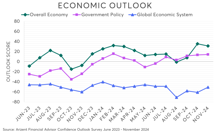 Financial confidence held steady this month as advisors and clients — like the rest of the country — awaited the presidential election and held their breath.