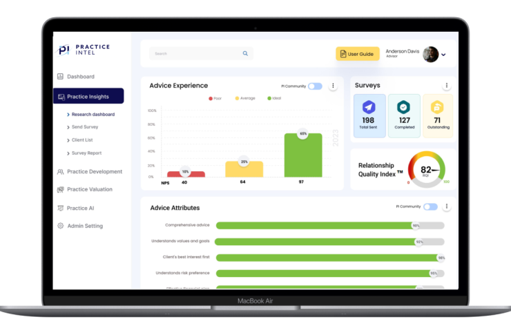 Rieman said advisors on the Practice Intel platform will know with certainty what their clients think about their advice, noting that a common narrative in the industry is that the best advisors can't be replicated.