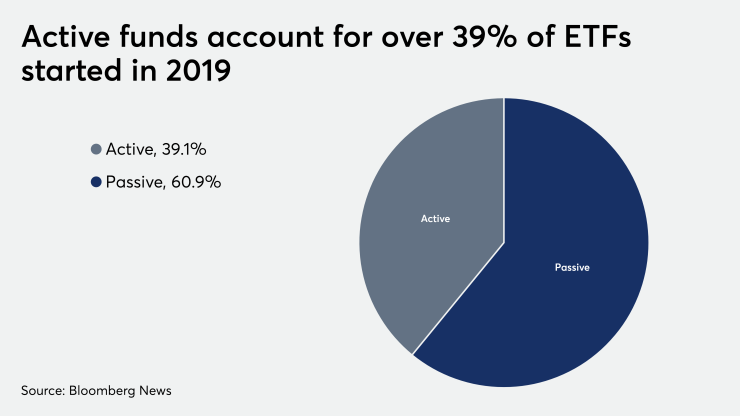 It’s an indication of just how challenging it is for newcomers to the $4.6 trillion U.S. ETF market, where more than 2,000 funds are already duking it out for assets. While indexed strategies oversee 98% of assets, more than 39% of funds started last year adopted an active approach to security selection. That’s raising the bar for stock- and bond-pickers that want to make an impact with ETFs, and need to figure out what investors want, fast.