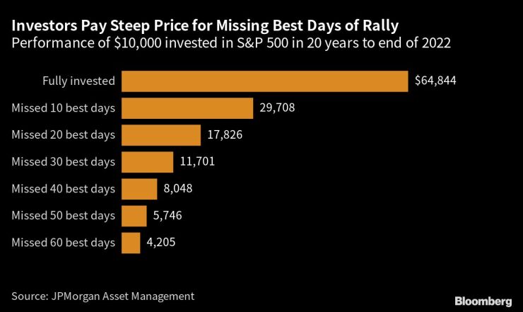 Still, there's plenty of debate over whether those products can compete against inflation and the stock market. There's also a downside to pulling money from stocks: J.P. Morgan Asset Management data show that investors who were absent for the S&P 500's 10 best days in the two decades through 2022 received half the gains of those who were in the market for the entire period.