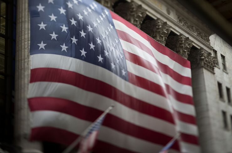 The God Bless America ETF, advised by Toroso Investments and sub-advised by Curran Financial Partners, will seek to invest in U.S.-listed companies with a “track record of creating American jobs,” according to a Tuesday filing with the SEC. The actively managed ETF, which will trade under the ticker YALL, will screen out firms that have “emphasized political activism and social agendas at the expense of maximizing shareholder return.”