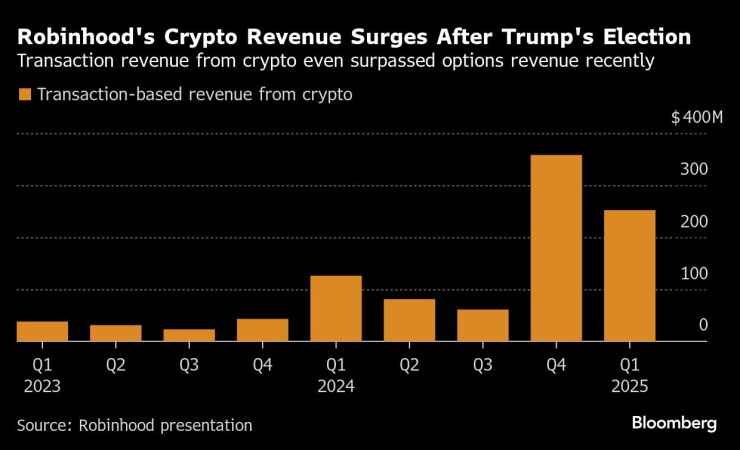 For Morgan Stanley, offering crypto trading at E-Trade would ratchet up competition with the likes of Robinhood. That firm has let clients trade crypto for more than a half decade — a business that pulled in $626 million last year, or 21% of Robinhood's total net revenue. And as Trump's policy changes boosted trading, the company's first-quarter profit more than doubled.