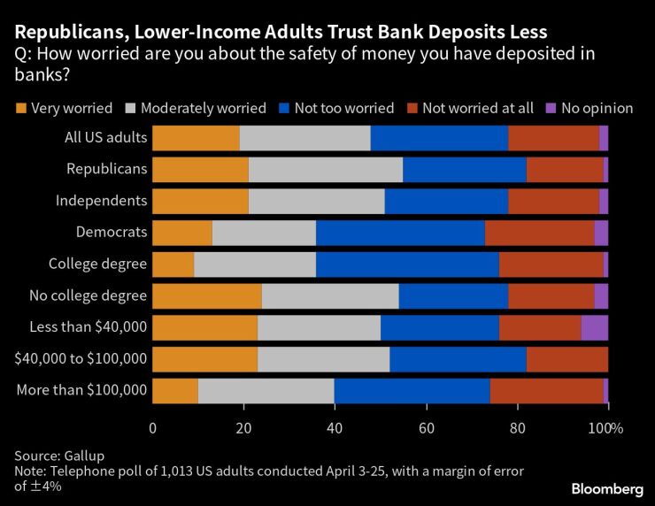 Worries are also significantly higher among those without a college degree and those who make less than $100,000 — even though Federal Deposit Insurance Corporation guarantees deposits up to $250,000.