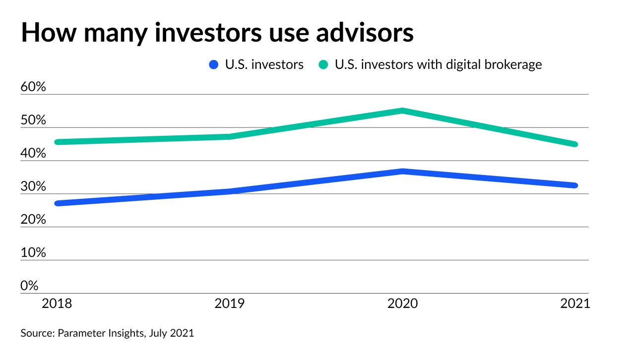 As investors rush toward online trading apps, more wealth managers may offer self-directed investing Fewer Americans are working with advisors, especially those already managing money online, new research shows.