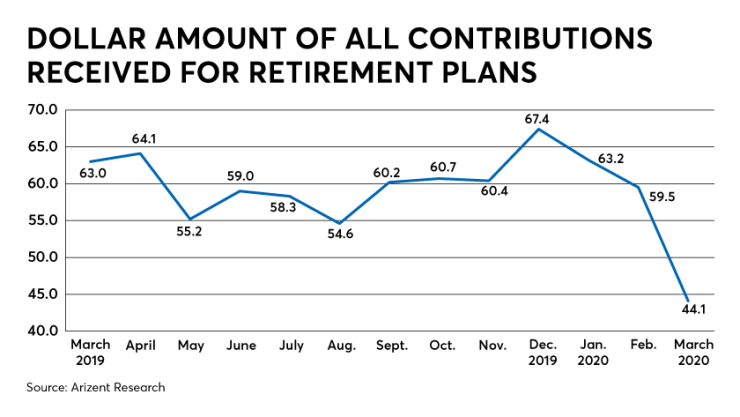 Those worries have translated into another record low in the RACI survey. The component of the index that measures overall contributions to retirement plans checked in at 44.1 — the first time that metric has posted a score below 50. The current mark represented a drop of 15.4 points from the previous month, and was off 18.9 points from last year.