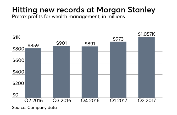 Morgan Stanley, which reported earnings Wednesday, notched a number of records: net revenues of $4.15 billion, up 9% from the year-ago period, pretax profits of $1 billion, up 23%, and record fee-based assets of $962 billion, up 17%.