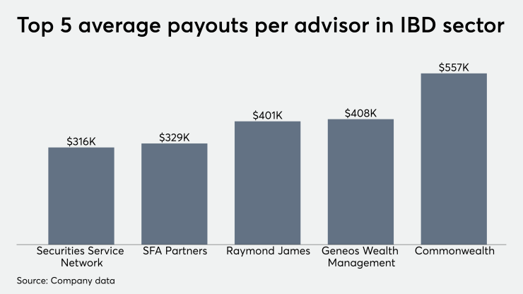 The advisors affiliating with Commonwealth this year are bringing an average annual production of more than $500,000, according to the firm. Commonwealth’s average payout as a firm of $557,000 is the