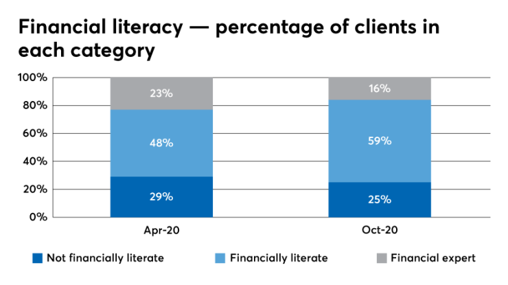 For many advisors, discussions around investments in the context of the pandemic have been an opportunity for broader conversations around financial literacy, an area key to clients' financial wellness and a metric that has been showing some uptick since April.
