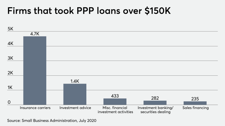 Given the sense of panic during the spring, some companies may have taken loans out under the name of a parent company to keep it off the books of a FINRA-regulated broker-dealer entity, says Stephen Murphy, managing director of Foreside Financial Group, which provides governance, risk management and compliance technology to advisors. The first-come, first-served roll out of the funding also sparked a rush to apply for the loans.