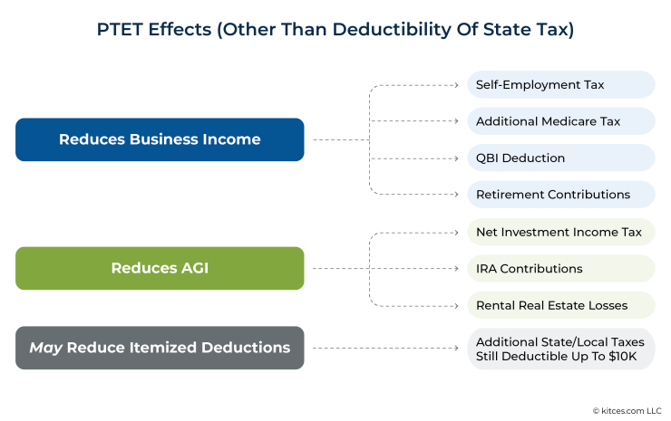 Finally, it's worth reflecting on the fact that, because the PTET effectively shifts state and local tax payments from being an itemized deduction on Schedule A to being a deductible business expense, a PTET election can also affect the taxpayer's other itemized deductions (and whether they even continue to itemize or instead take the standard deduction).