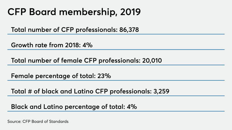 The number of black and Latino CFP professionals grew 12% last year — the highest increase ever, according to the CFP Board.