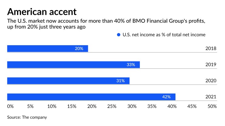 BMO Financial Group's strategy of leaning more heavily on its U.S. operations has started to pay off.