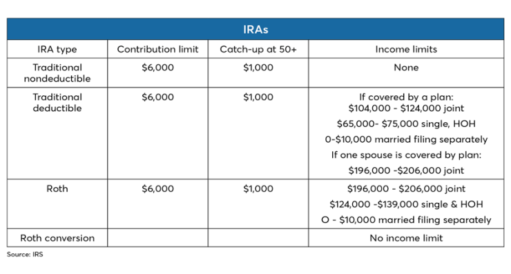 If your client turned 50 years old this year, they're entitled to make a catch-up contribution of $6,000 for their 401(k), if their plan allows. It’s not too late to catch up for 2020. too. Anyone with compensation can contribute to a traditional IRA (see chart.). It’s the deductibility of the IRA contribution that is subject to income limits. Just a reminder: Roth IRA contributions do have income limits that restrict the ability to make a contribution.